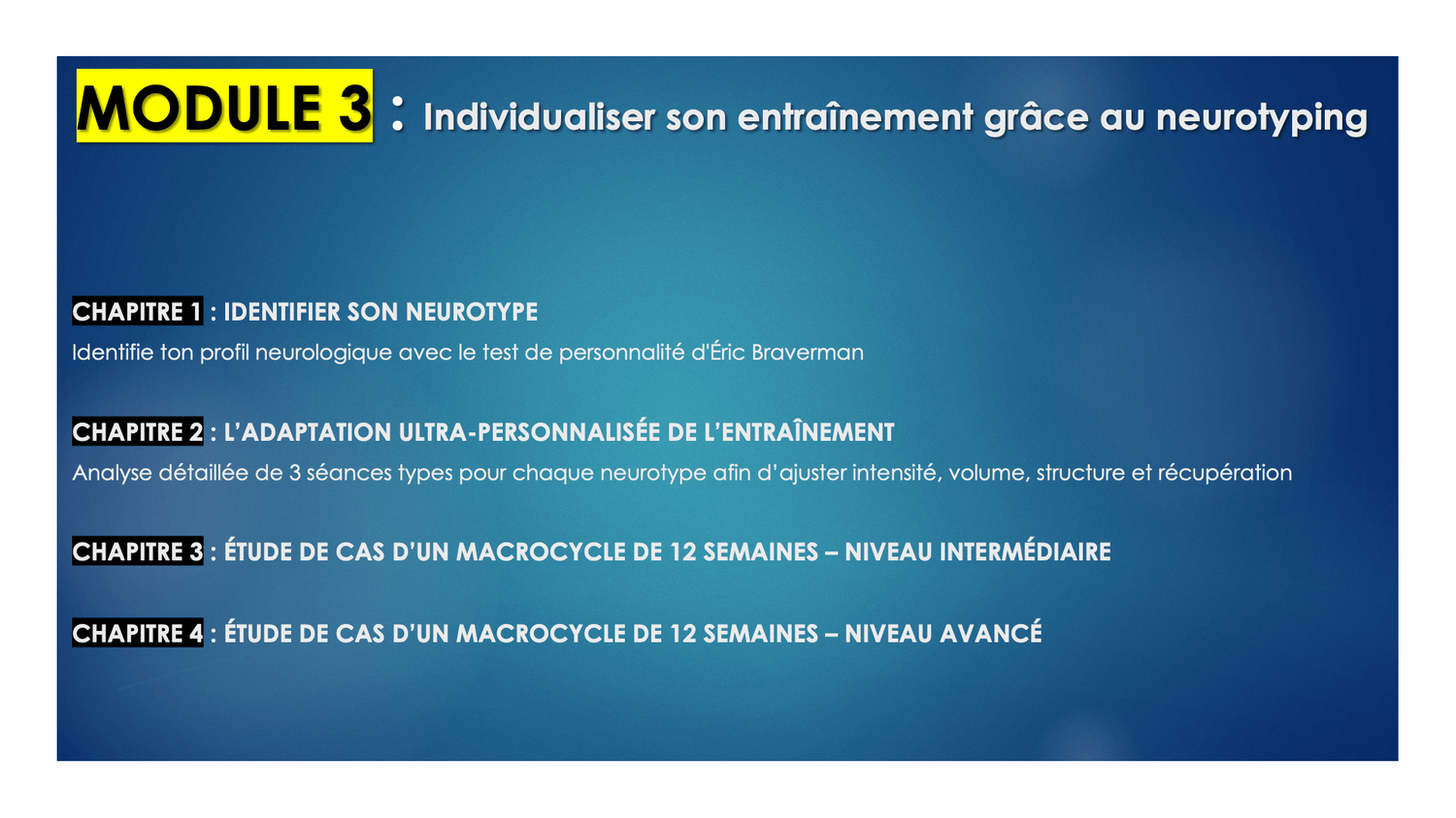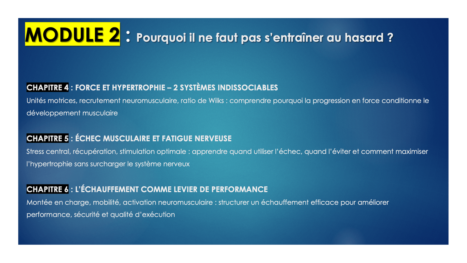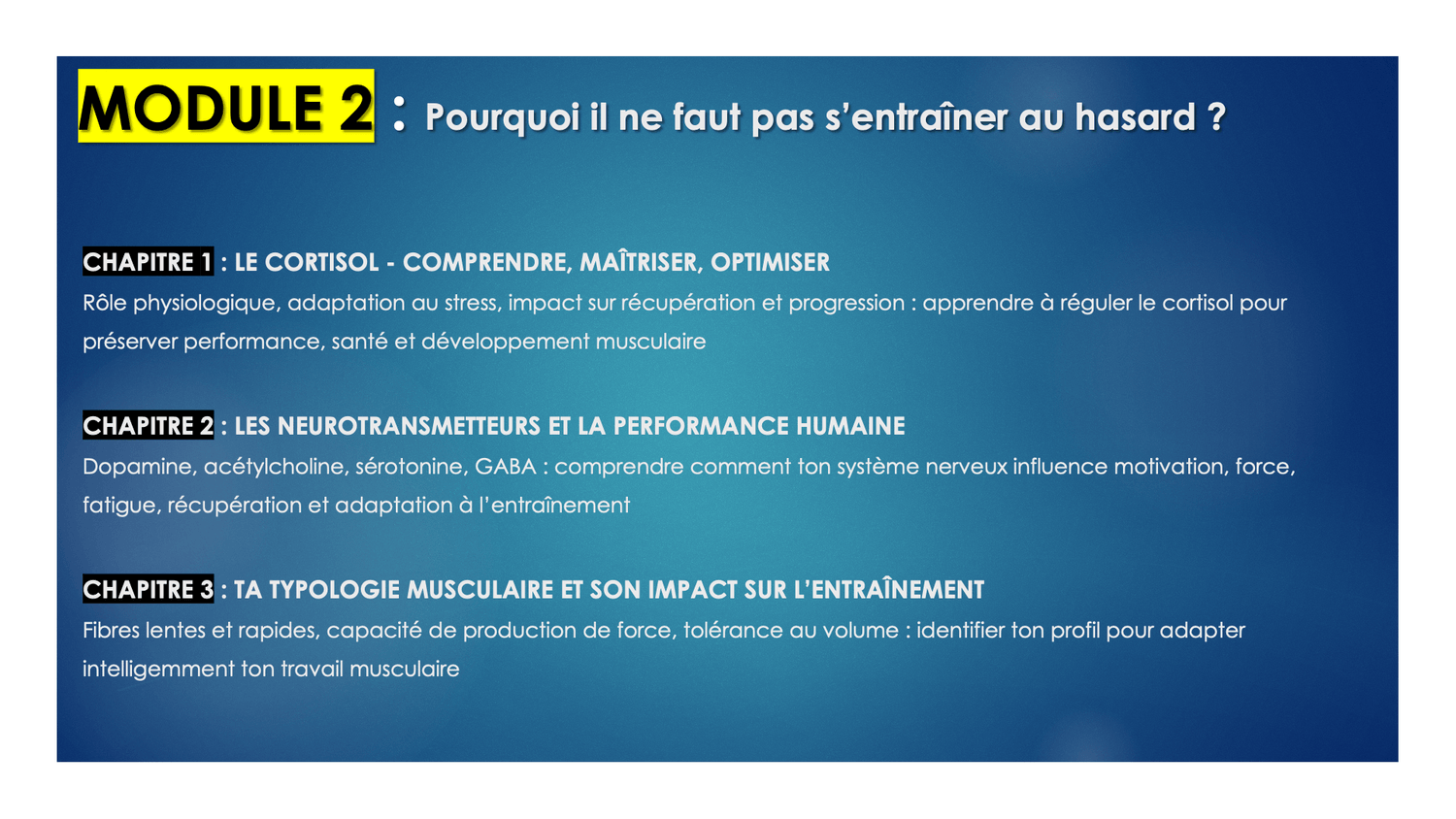 La formation, elle, a pour objectif de transmettre une méthode complète afin de comprendre, structurer et faire évoluer ton entraînement de manière autonome sur le long terme.