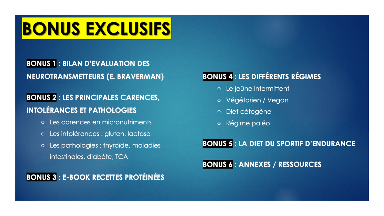 L’Encyclopédie de la Nutrition correspond à la formation : le contenu qui t’apprend à maîtriser ta nutrition.